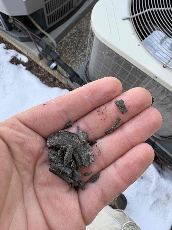 Performed scheduled heating maintenance service on dual HVAC systems. Inspected electrical panel connections, noting proper 80-amp breaker configuration for system operation. Replaced four 13x21.5x1 air filters (actual size 12-7/8x21-1/2x3/4) and examined ductwork insulation, identifying areas with damaged foil wrapping that will require future attention.