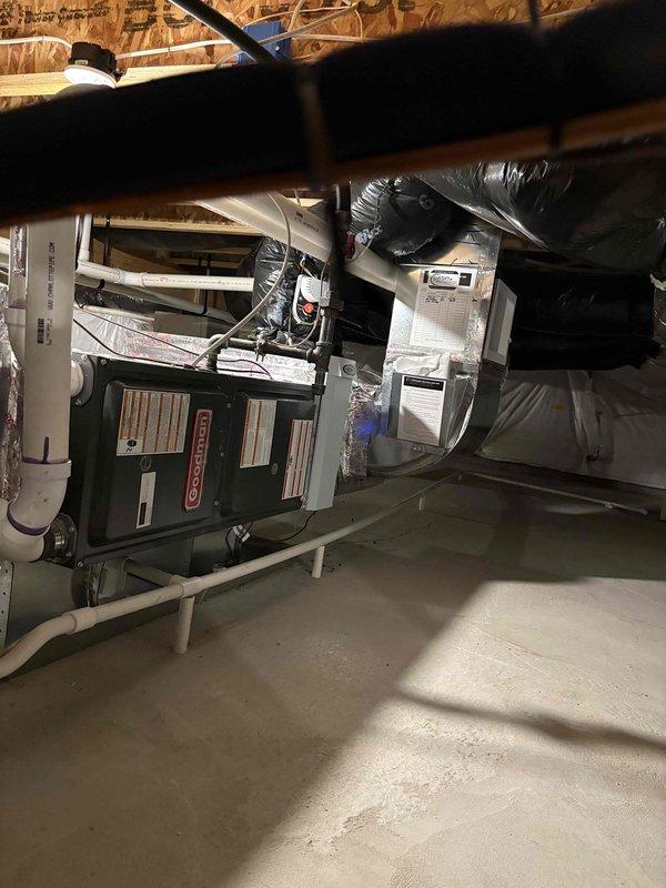 Successfully completed installation of a complete HVAC system, including a 2.5-ton heat pump (5A6H4030) and variable speed fan coil unit (5TEM6B03) with 10KW heater. Removed old equipment, installed new outdoor unit on pressure-treated wood platform, adapted existing ductwork with transition fittings, installed two Wi-Fi thermostats, and added an automatic condensation pump while maintaining existing zone controls.